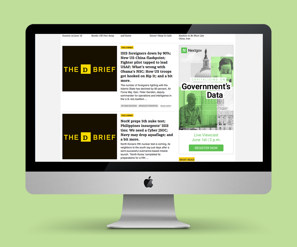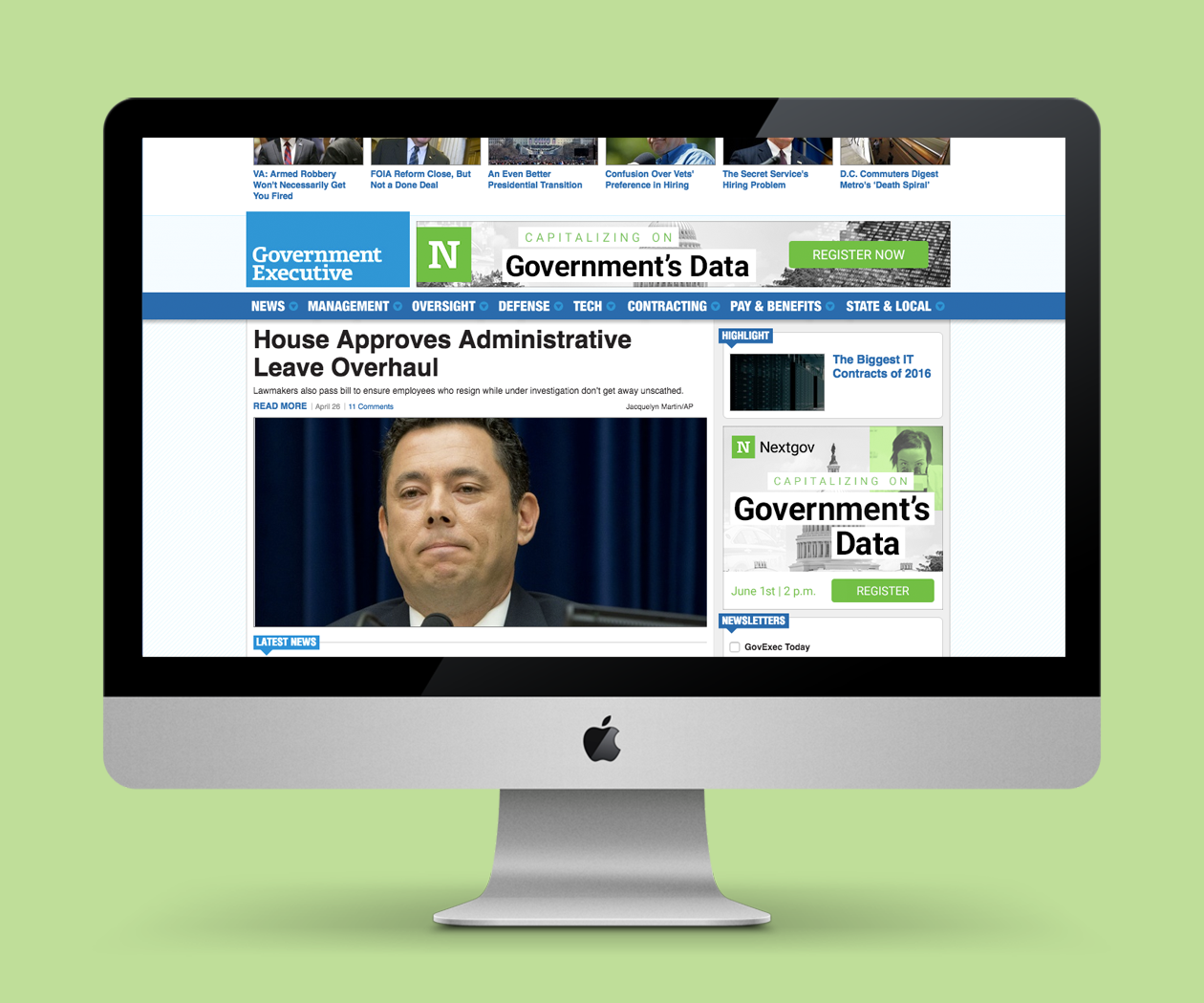 The following are web ads I designed that ran on the websites of all four Government Executive Media Group brands to promote the Nextgov viewcast: