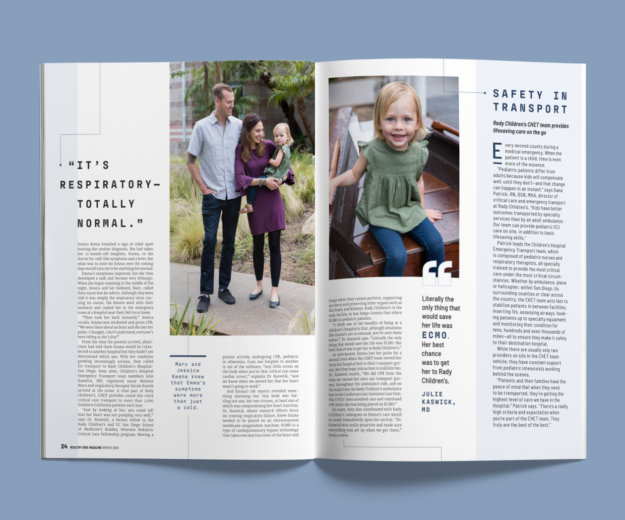 Feature design for Healthy Kids magazine, a custom publication produced for Rady Children's Hospital-San Diego