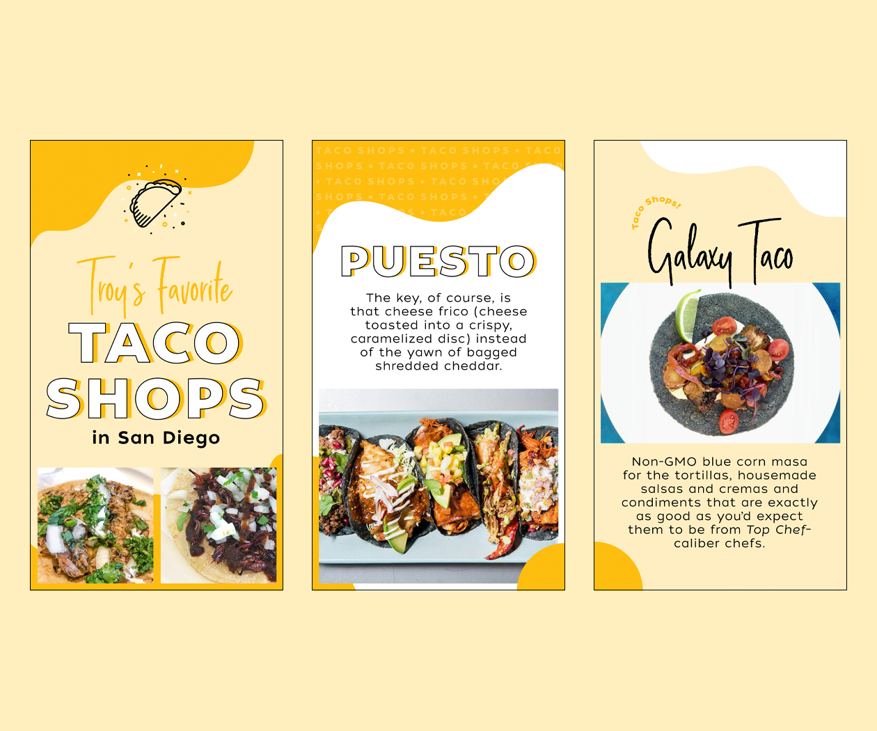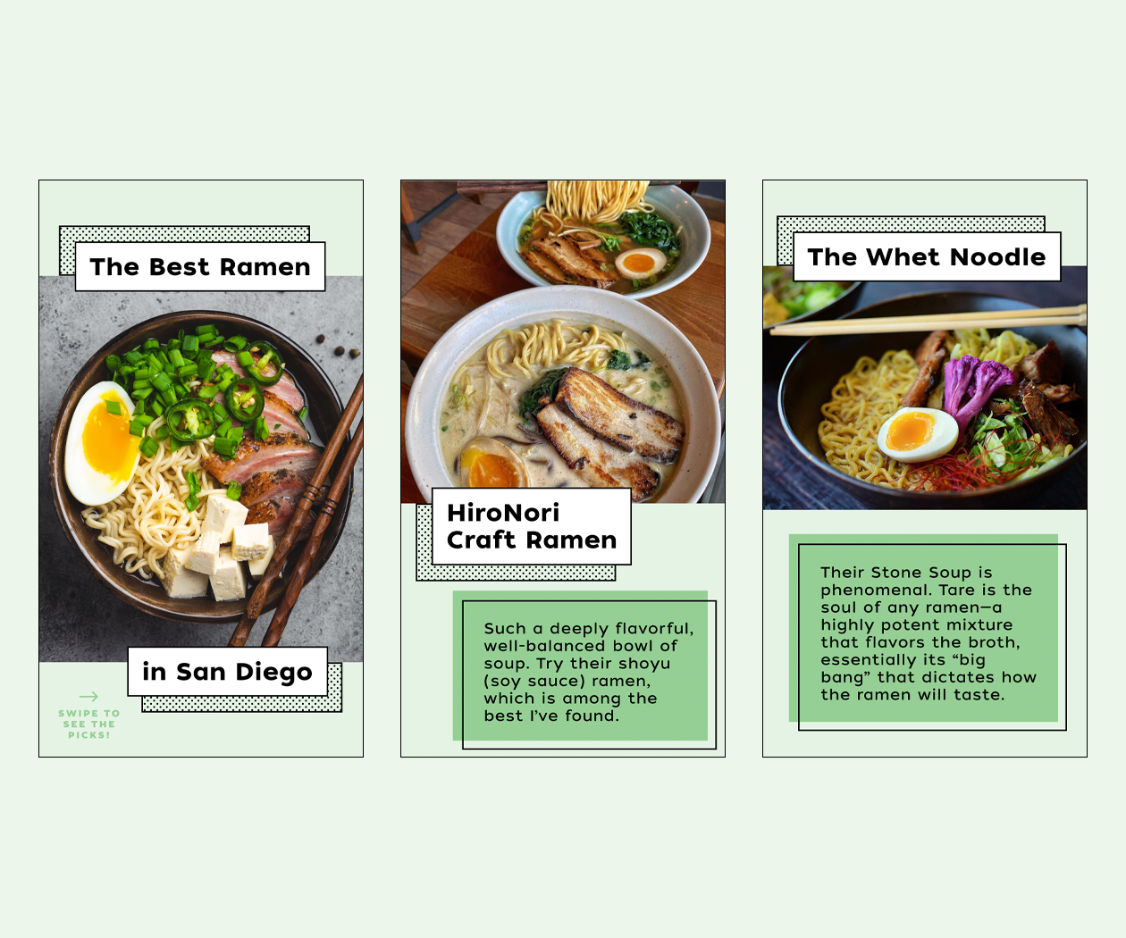 Editorial Instagram stories designed for San Diego Magazine’s feed